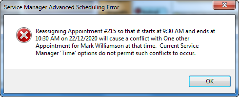 •Ignore - Conflicts are allowed and no message will be displayed to advise of conflicts