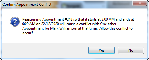 •Ignore - Conflicts are allowed and no message will be displayed to advise of conflicts
